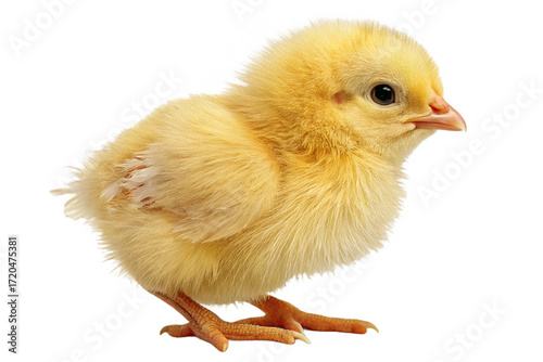 © mobil, Obraz premium A close up view of a fluffy yellow chick standing against a black background in a studio setting created with generated ai