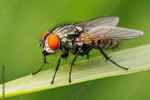 © alva studio, Fototapeta premium A Close Up View Of A Fly On A Leaf