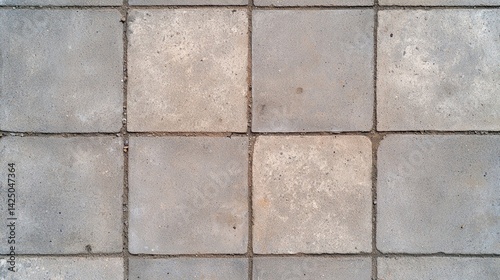 Naklejka premium A close-up view of a gray concrete pavement with square tiles arranged in a...