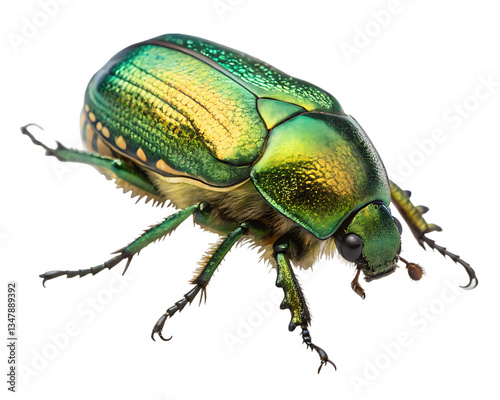 © Googl, Naklejka premium A close up view of a green and gold beetle against a black backdrop