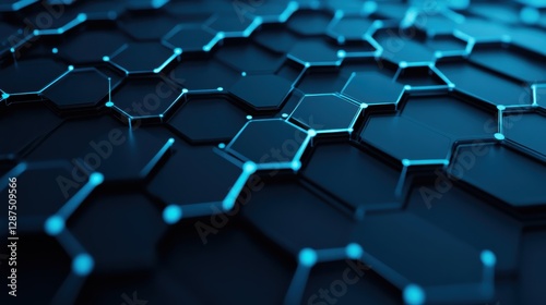 © nattapon98, Fototapeta premium A close-up view of a hexagonal pattern in blue and black, resembling a futuristic or technological surface.