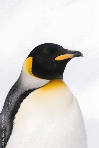 Naklejka premium A close-up view of a king penguin showcasing its distinctive black, white,...