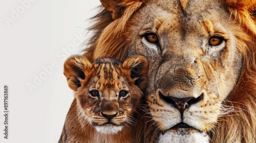 Fototapeta premium A close-up view of a lioness with her cub, showcasing their bond