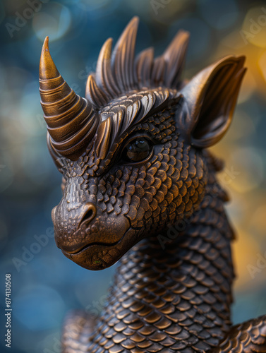 © MagicsPhotos, Obraz premium A close-up view of a meticulously crafted stone dragon sculpture