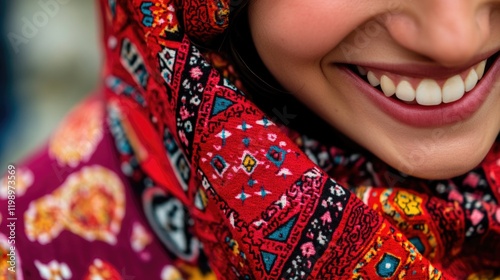 Fototapeta premium A close-up view of a person wearing a scarf, ideal for use in fashion or...