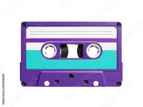 Fototapeta premium A close-up view of a purple cassette tape on a white background
