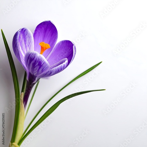 © Raf, Naklejka premium A close-up view of a purple crocus blossom on white background