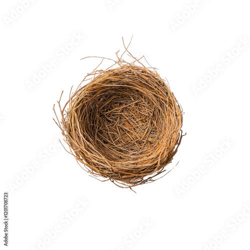 Obraz premium A close-up view of a rustic bird's nest made of twigs and grass., isolated on...