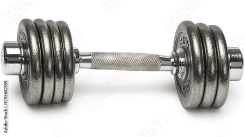 Fototapeta premium A close-up view of a shiny, adjustable dumbbell resting on a clean surface,...