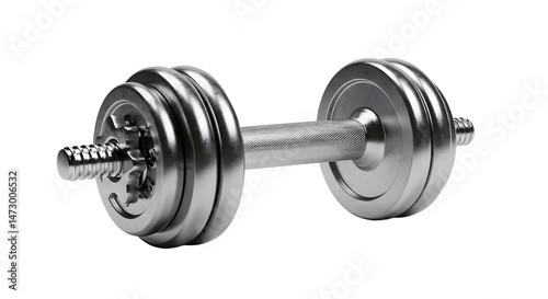 Fototapeta premium A close-up view of a shiny silver dumbbell resting on a clean surface, highlighting fitness and strength training equipment