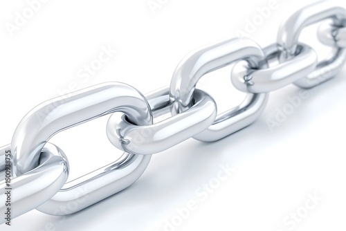 Obraz premium A close-up view of a silver chain link on a white background, showcasing its...