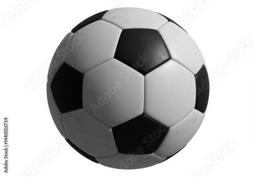 © Laki, Fototapeta premium A close up view of a soccer ball with black and white patches on a white isolated background image object