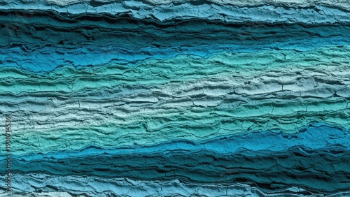© tya, Obraz premium A close-up view of a textured, layered, blue and green rock formation