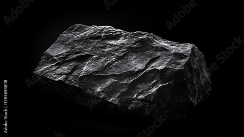© Artify Shots, Fototapeta premium A close-up view of a textured, rough black rock against a dark background highlighting its natural features and intricate surfaces