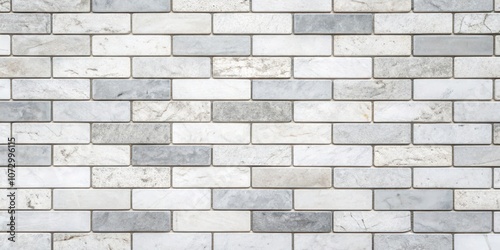 © Theerawat, Obraz premium A close-up view of a white and gray brick wall, featuring subtle variations in texture and color.