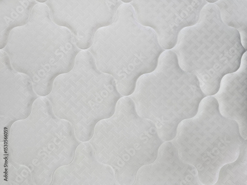 Fototapeta premium A close-up view of a white quilted mattress surface with geometric stitching...