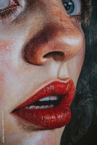 Fototapeta premium A close-up view of a woman's face in a painting, suitable for use in art-related contexts