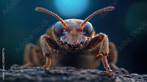 © Natthakan, Fototapeta premium A close-up view of an ant showcasing intricate details and textures.