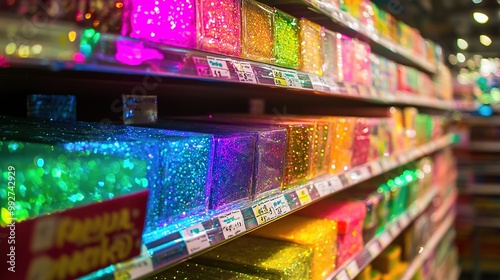 © Li, Naklejka premium A close-up view of bioluminescent plankton glitter, showcasing luminous particles that create a mesmerizing display of shimmering colors.