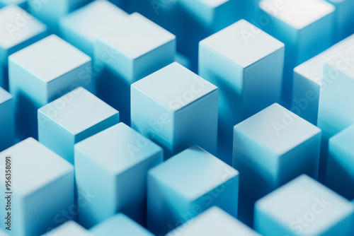 Obraz premium A close-up view of blue 3D blocks arranged in a grid pattern, showcasing...