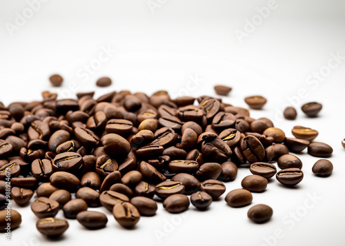 © Selman, Fototapeta premium A Close-Up View of Freshly Roasted Coffee Beans Displaying Their Rich Brown Color and Textured Surface