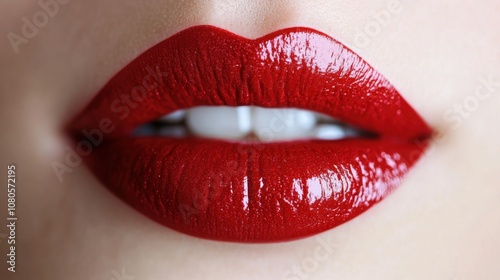 Obraz premium A close-up view of glossy red lips highlighting beauty and elegance in...