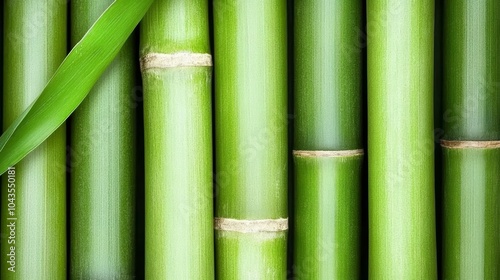 Obraz premium A close-up view of green bamboo stalks arranged closely together, showcasing...