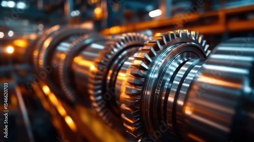 Fototapeta premium A close-up view of industrial gears showcasing intricate designs, precision...