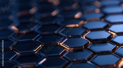 Obraz premium A close-up view of interlocking hexagonal shapes with a sleek, reflective...