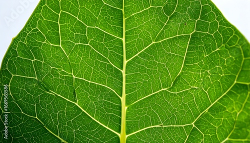 Obraz premium A close-up view of intricate vein patterns on a vibrant green leaf,...