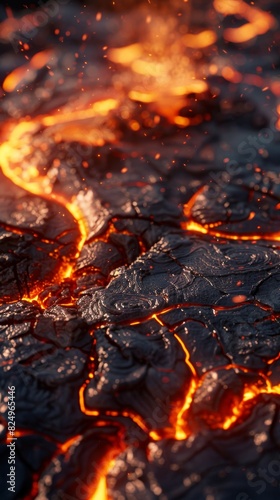 Fototapeta premium A close-up view of lava flowing through the ground, showcasing the intense...