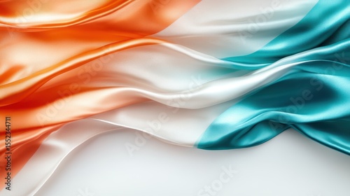 © svastix, Fototapeta premium A close-up view of luxurious silk fabric displaying elegant orange and teal colors, symbolizing movement, elegance, and artistic expression in fashion design.