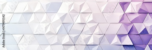 © SUUGOIisME, Obraz premium A close-up view of patterned ceramic tiles featuring purple and white triangular shapes. showcasing intricate textures and colors in a modern interior design setting