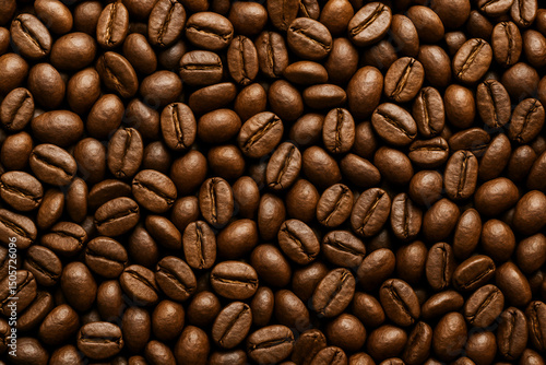 © GenBy, Naklejka premium A close-up view of roasted coffee beans, showcasing their rich brown color and smooth textures