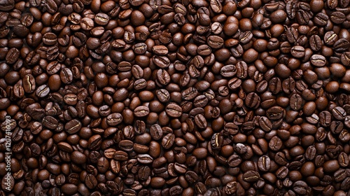 Fototapeta premium A close-up view of roasted coffee beans, showcasing their rich color and...