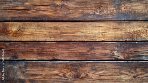 © Tiar, Fototapeta premium A close-up view of rustic wooden planks arranged horizontally.