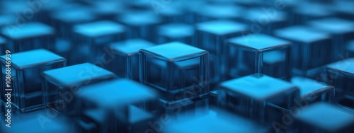 Obraz premium A close-up view of shimmering, blue transparent cubes arranged in a grid,...