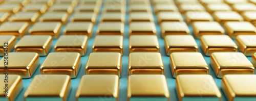 Naklejka premium A close-up view of shiny gold bars arranged in a neat grid, creating an elegant and luxurious texture and pattern.