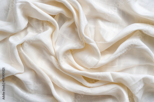 Fototapeta premium A close-up view of smooth, white fabric with elegant folds and a soft...