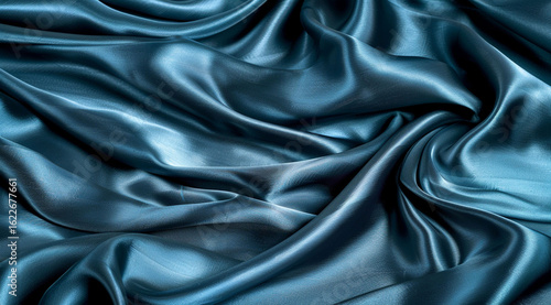 © SipraGenix, Obraz premium A close-up view of soft, blue satin fabric draped smoothly. The fabric has a rich texture and a luxurious feel