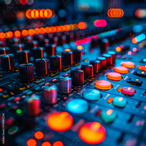 © MNFTs, Obraz premium A close-up view of sound mixer console in a recording studio