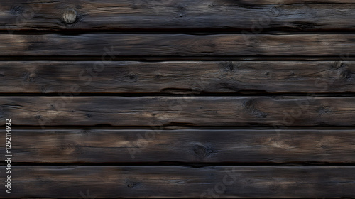 © Alona, Fototapeta premium A close-up view of textured dark wooden planks arranged horizontally.