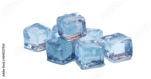 © Molang Visual, Obraz premium A Close-Up View of Transparent Blue Ice Cubes on White Background