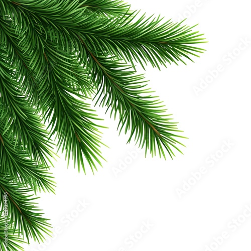 © Chopang.studio, Fototapeta premium A close-up view of vibrant green pine branches, showcasing detailed needles against a plain white background.