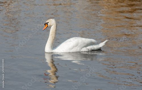 Fototapeta premium A close-up with a white swan on the water