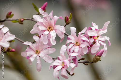 © Olena, Obraz premium A close view of a flowering magnolia branch