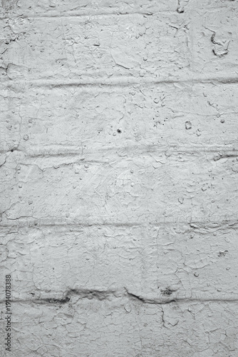© reddish, Obraz premium A close view of a light gray brick wall with textured and peeling paint.