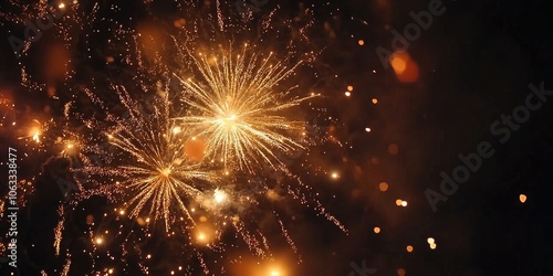 Naklejka premium A close view of bright, vivid fireworks lighting up the dark night sky...