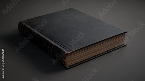 Obraz premium A closed, dark leather-bound book resting on a surface, suggesting a sense of...