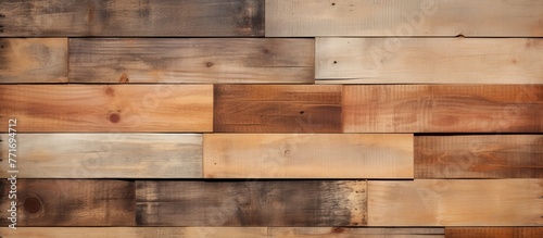 Naklejka premium A closeup of a brown hardwood wall made of rectangular wooden planks. The...